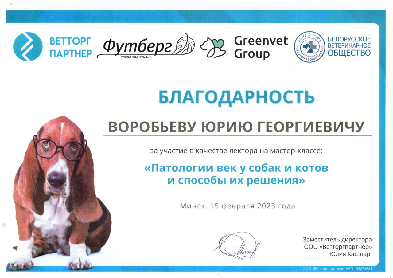 • февраль 2023 г. — преподаватель Мастер-класса «Патологии век у собак и котов и способы их решения», г. Минск,