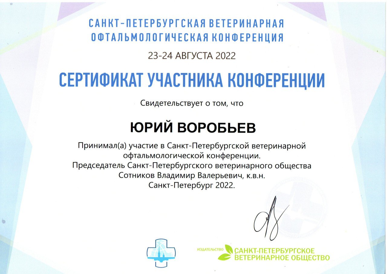 • август 2022 г. — ветеринарная офтальмологическая конференция, г. Санкт-Петербург,