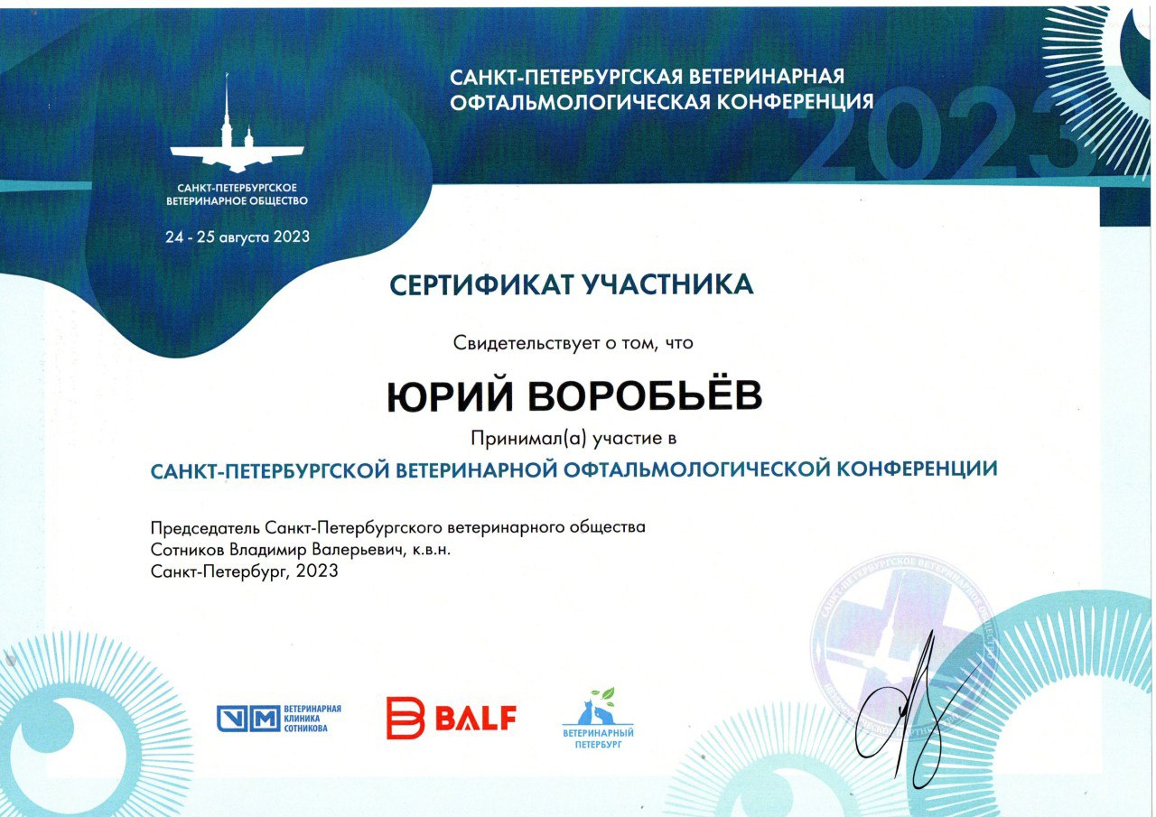 • август 2023 г. — ветеринарная офтальмологическая конференция, г. Санкт-Петербург,