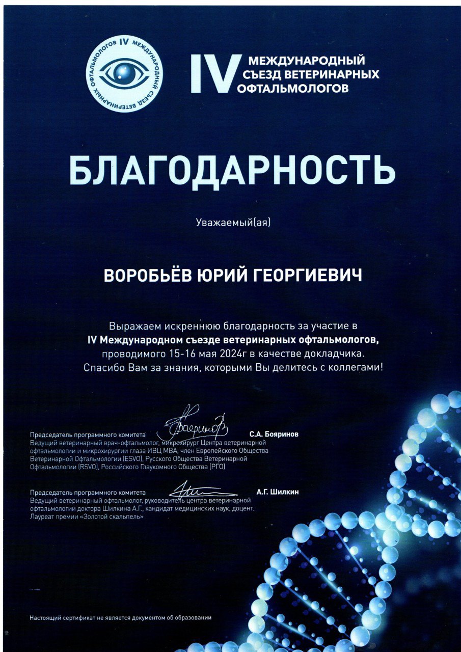 • июнь 2016 г. — 4-й международный конгресс по ветеринарной офтальмологии, г. Москва,