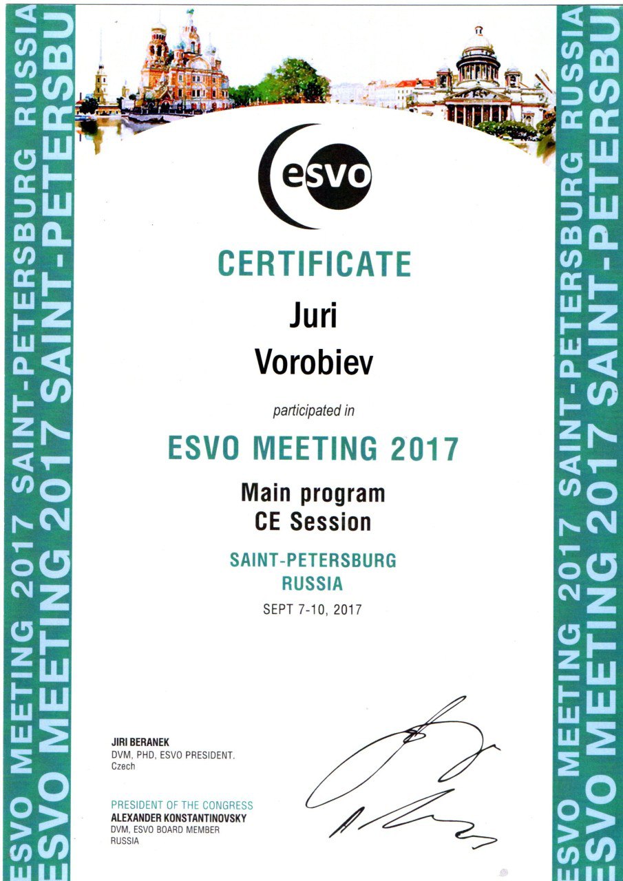 • сентябрь 2017 г. — Международный конгресс по офтальмологии ESVO 2017, г.Санкт-Петербург,