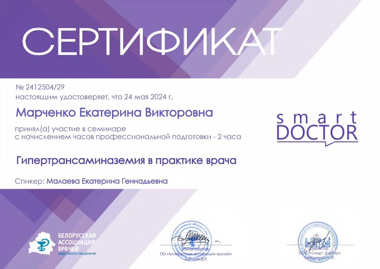 • 2019 г. — Курсы повышения квалификации по программе «Коморбидные заболевания в общеклинической практике»