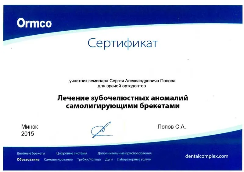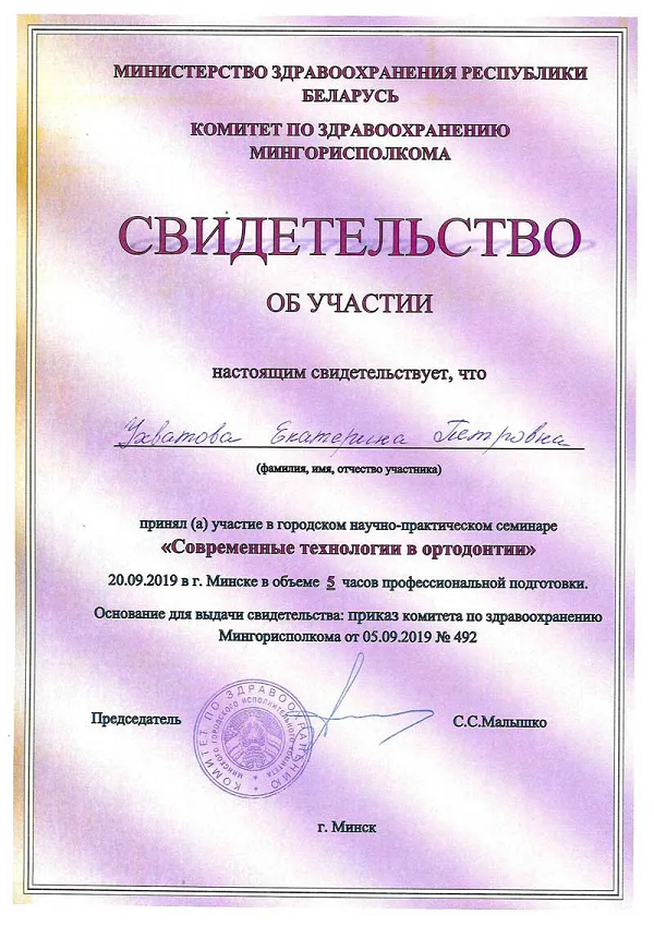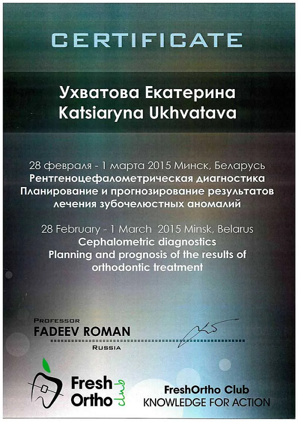 • Клиническая ординатура по специальности «стоматология ортодонтическая».